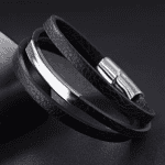This bracelet is made with pure leather, designed with the highest quality material. The bracelet is designed to last a long time without a change in quality. It also has a magnetic hook which keeps it interlocked.