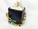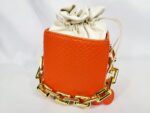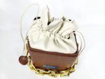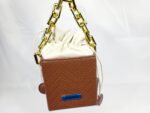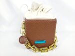 The Caramel Luxe Pouch is a stylish and innovative handbag that merges vintage charm with modern elegance. Crafted in a rich caramel-brown textured faux leather, this purse features a soft cream drawstring closure, giving it a unique bucket bag silhouette. The striking gold-tone chain link strap and the small matching charm elevate the design with a touch of opulence, while the bold blue accent on the front adds a contemporary twist. Compact yet functional, this pouch is perfect for carrying essentials in style, making it a standout piece for both casual and formal occasions.