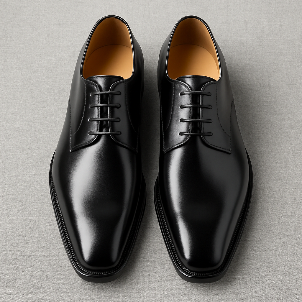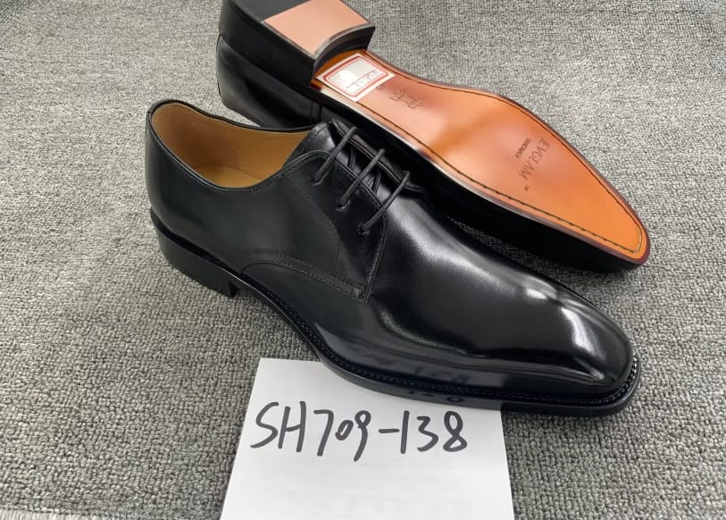 The JEVGLAM Classic Derby Oxford is the embodiment of timeless elegance. Handmade from premium leather, this shoe blends a sleek silhouette with uncompromising durability. Its polished black finish makes it the perfect choice for boardrooms, weddings, and formal events where presence and prestige matter. Designed for gentlemen who value sophistication, comfort, and long-lasting craftsmanship.