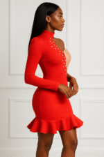 Naomi Neck Beaded Puff Sleeve Bodycon Dress
