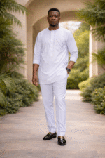 The Obiara Classic White Senator Set is a timeless African menswear essential designed for elegance, comfort, and cultural pride. Crafted in a clean white finish with subtle traditional detailing, this two-piece African outfit delivers a sharp, confident look suitable for weddings, cultural ceremonies, church, and upscale casual events.