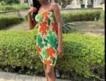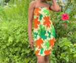 Doris tube dress is designed with an elastic band that makes it hug the body firmly and also gives the shapely look you see in the picture. The colors on the material gives it a natural look that is beautiful to look upon.