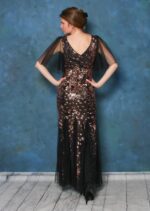 This Kelly Black Sequin Evening Dress is designes as a mesh short sleeve. The dress is flowing dress with layers of flare at the hem. The sequin makes it so gorgeous and attractive.