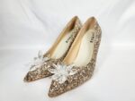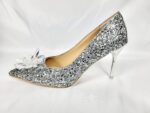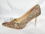 Step into luxury with the Crystal Glimmer Stilettos, a dazzling pair of heels designed for those who love to shine. These stilettos feature a pointed toe adorned with glittering crystals, adding a touch of elegance and sophistication. The body of the shoe is covered in sparkling sequins, reflecting light from every angle, making them perfect for glamorous events or a night out. The stiletto heel is not only stylish but also adds height and elongates the legs, while the padded insole ensures comfort throughout the night. The crystal-embellished heel adds an extra element of glamour, completing the look. These Crystal Glimmer Stilettos are the ultimate statement piece for any wardrobe.