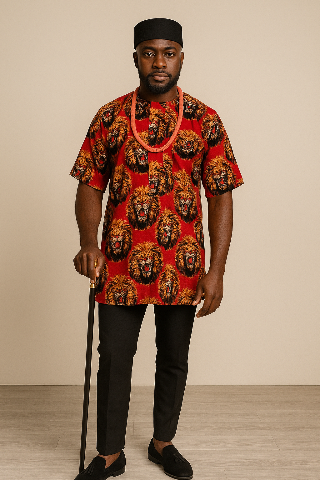 Made with high-quality fabric, this attire pairs beautifully with dress trousers, coral beads, and a traditional hat, delivering a truly majestic look that turns heads at every event. Whether you’re honoring your heritage or elevating your wardrobe, the Royal Lion Majesty Attire offers unmatched presence and prestige.