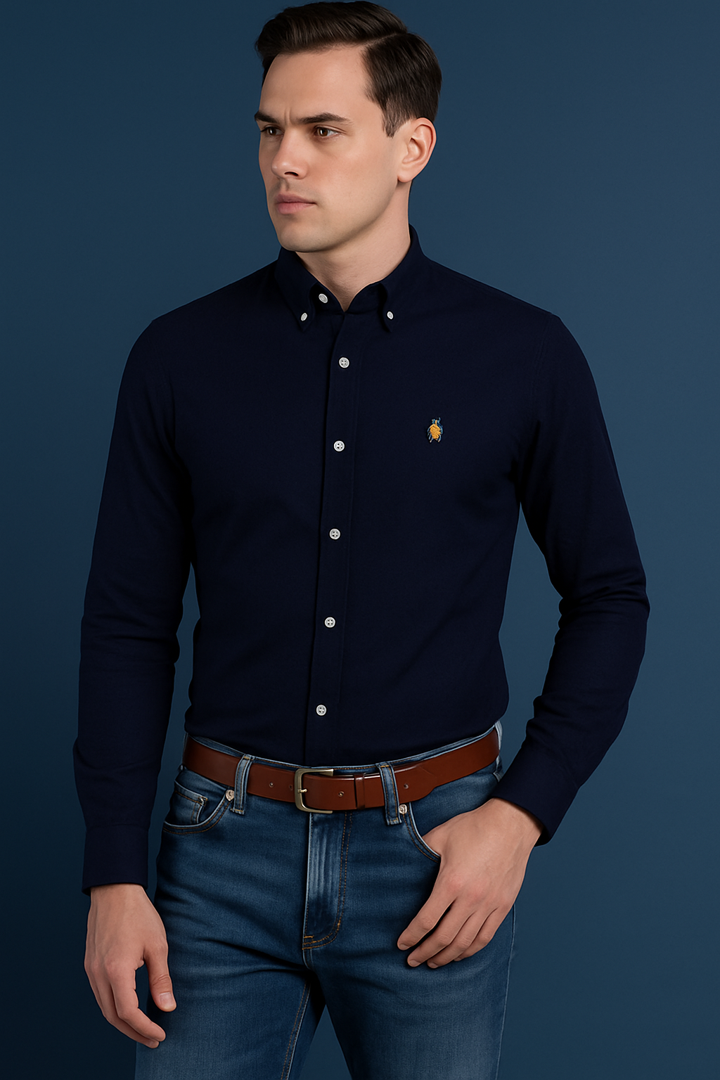 Be the first to review “JEVGLAM Navy Blue Button-Down Oxford Shirt for Men – Classic Polo Embroidered Long Sleeve” Cancel reply