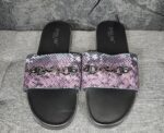 Step into bold sophistication with the Midnight Python Luxe Slides. Featuring a sleek black sole and a statement strap in a purple python-skin pattern, these slides are elevated with metal horsebit detailing for a touch of modern elegance. Ideal for upscale casual wear or luxury lounging, they effortlessly blend style and comfort.
