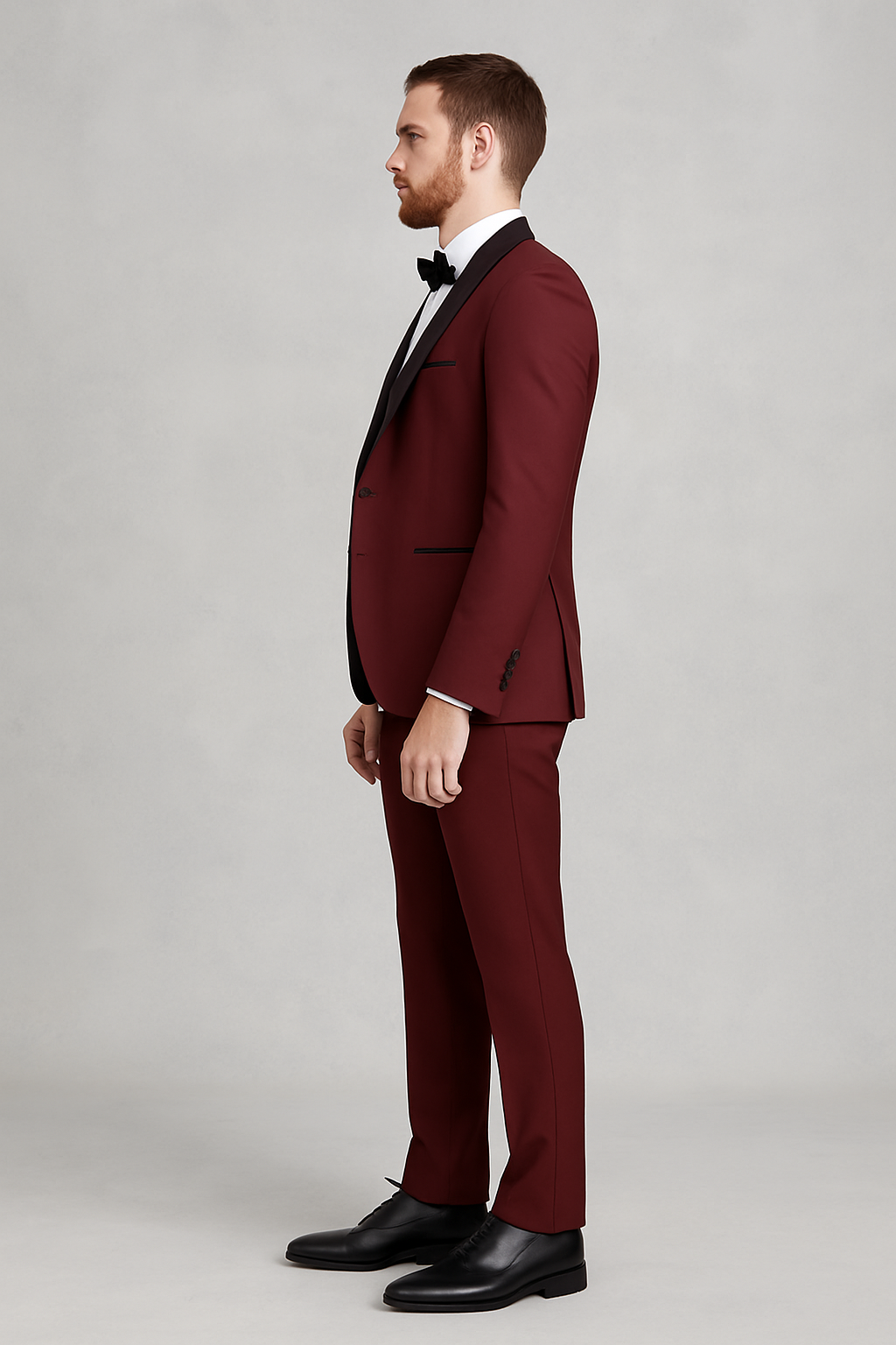Ray 3-Piece Burgundy Tuxedo Slim Fit Suit