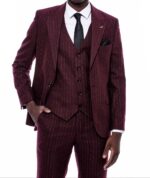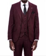 Striped Burgundy Vested Suit