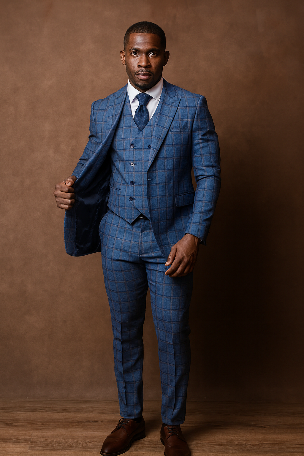 Be the first to review “3 Piece Sky Blue Plaid Suit” Cancel reply