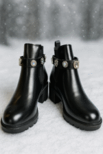 Be the first to review “JEVGLAM Luxe Crystal Black Leather Ankle Boots for Women – Elegant Dress & Winter Boots” Cancel reply