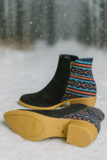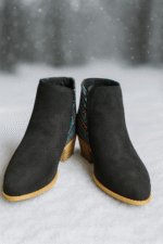 The JEVGLAM Tribal Accent Black Suede Ankle Boots bring a fusion of modern comfort and cultural elegance. Designed with premium black suede and accented by vibrant tribal patterns, these boots stand out effortlessly in any wardrobe. Perfect for adding flair to your casual, boho, or urban chic looks, they’re versatile enough for both fall strolls and winter outings.