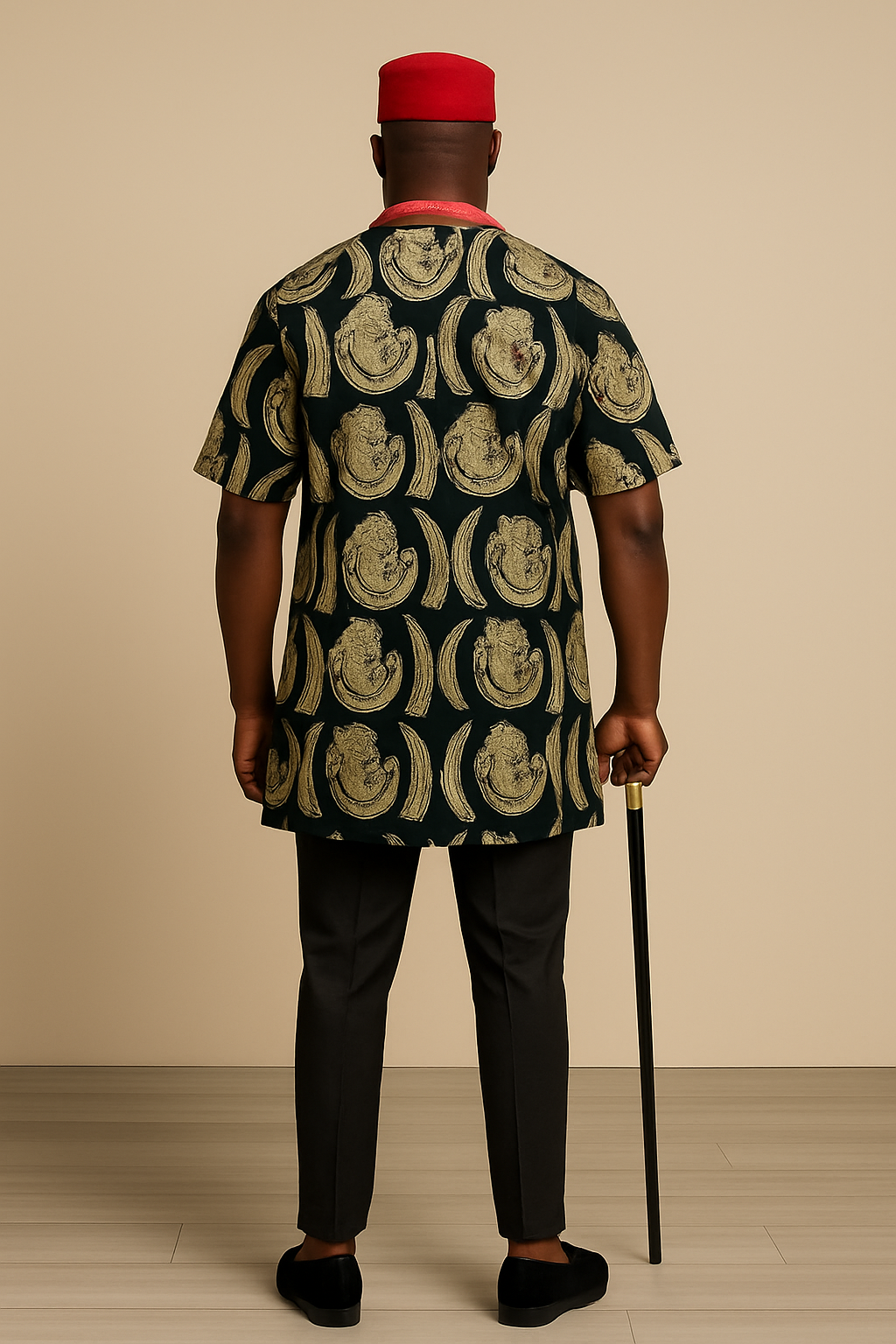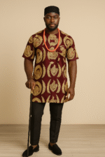 Elevate your cultural style with the Regal Ebony Heritage Attire, a premium African men’s traditional outfit designed with timeless elegance and royal symbolism. Crafted on a rich black background, this attire features intricate golden patterns inspired by heritage motifs—perfect for weddings, cultural ceremonies, festivals, and special occasions.