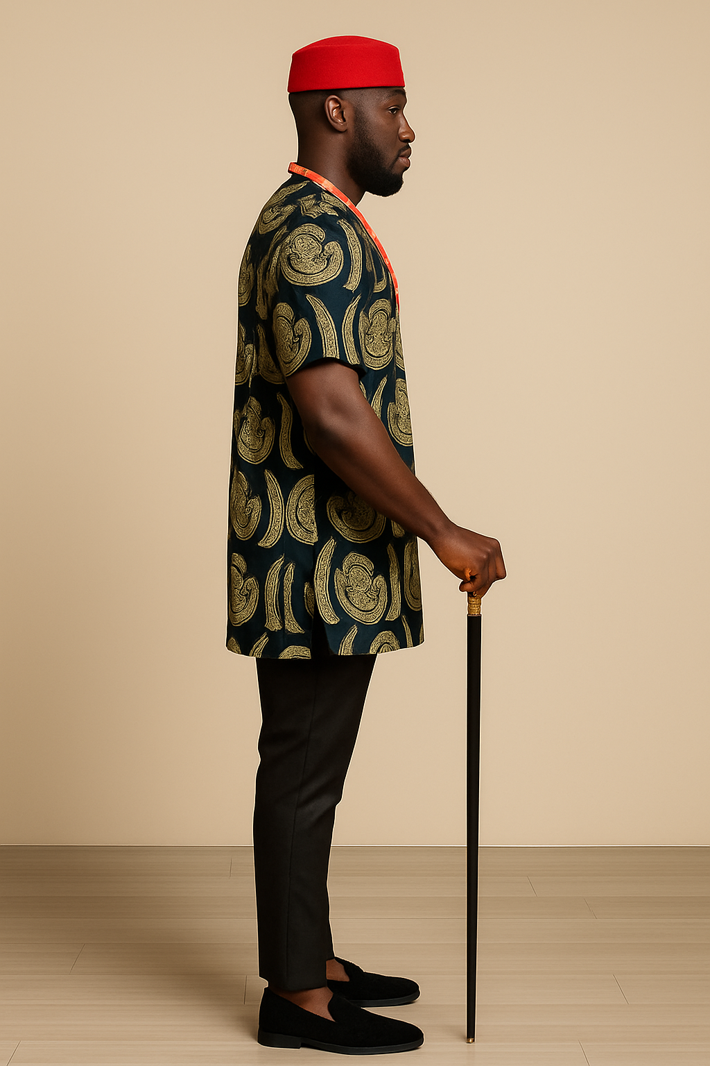 Made with high-quality fabric that blends tradition with modern tailoring, this outfit creates a bold, confident, and sophisticated look for the distinguished gentleman. Whether you’re celebrating culture or enhancing your wardrobe, the Regal Ebony Heritage Attire offers unmatched class and presence.