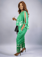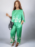 - Material: Both the top and pants are made from a smooth, satin-like fabric that offers a luxurious feel and a subtle sheen, perfect for both daytime and evening wear.